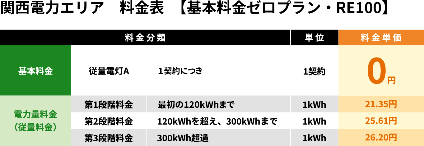 - 関西電力エリア 料金表