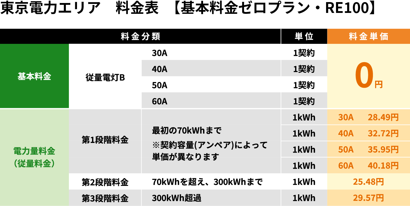 - 東京電力エリア 料金表