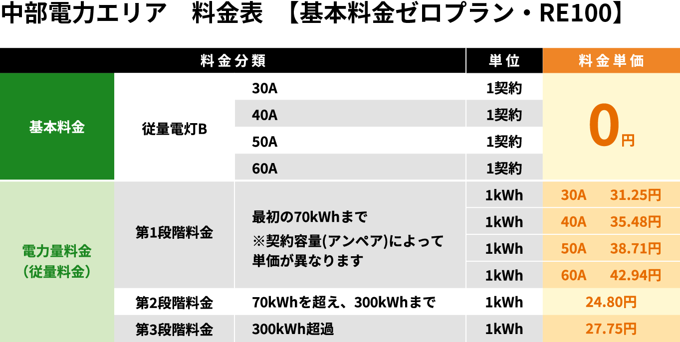 - 中部電力エリア 料金表